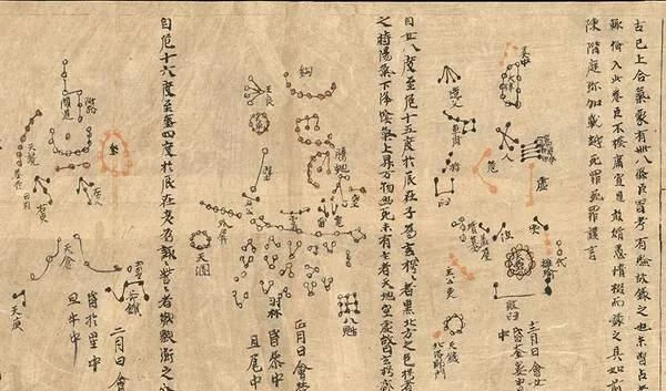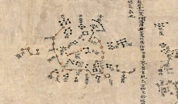 公元1907年英国考古学家斯坦因从敦煌莫高窟盗走的9000多件藏经洞珍贵文物中,有一卷星图、即现保存在英国博物馆的S·3326号敦煌遗书。这卷马本星图,是世界上现存星图中星数最多而且是最古老的一种。受到国内外研究古代天文学专家学者们的珍视,并给予高度评价。据S·3326号星徵胶片可知,该卷内容不止星图一项。卷首已残,无标题,内容为气象杂占,星图居于卷中。我国学者通过对这件星图及其整幅写本的绘画、书法、服饰和文字中的避讳三方面进行详尽的考证和研究后认为这件星图的写绘年代大致在公元705—710年之间,是一件8世纪初年的写本星图。